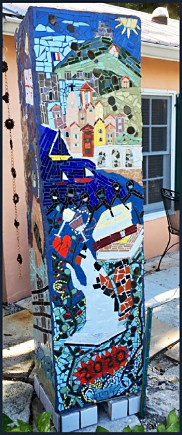 This is dedicated to 2020 and the spiraling virus you see at the bottom with the mask , to the “Covid Calico kitty “ I got this year who often sits on my book when she wants attention , to our beloved Villefranche and the fantastic women there(all appropriately masked) who share days of wine and book clubs and “footprints” all over the hills we love.